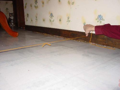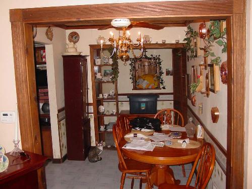 There is at least a 5" drop in the dining room floor area. (see pictures)